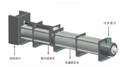 濃縮:當螺旋推動軸轉動時,設在推動軸外圍的多重固活疊片相對移動,在重力作用下,水從相對移動的疊片間隙中濾出,實現快速濃縮。